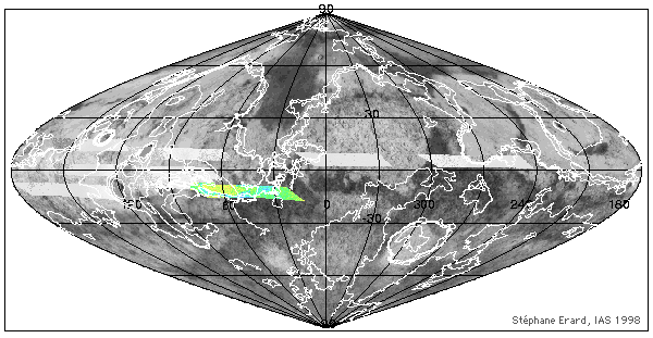 - Orbital parameters are not precisely known, and may have change during acquisition. Therefore, there could be a problem of projection at the eastern end, but the reference altimetry data available at the time (Mariner and Viking) are not reliable either in this region.